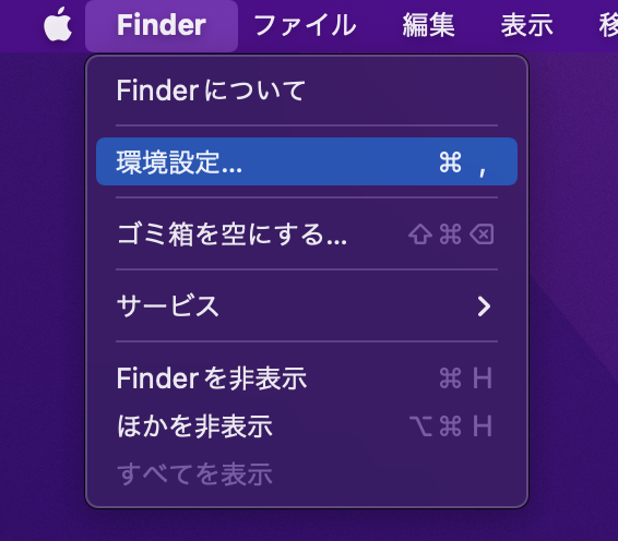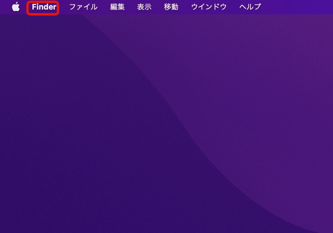 ①まずは、画面の左上にある「Finder」をクリックしてください。