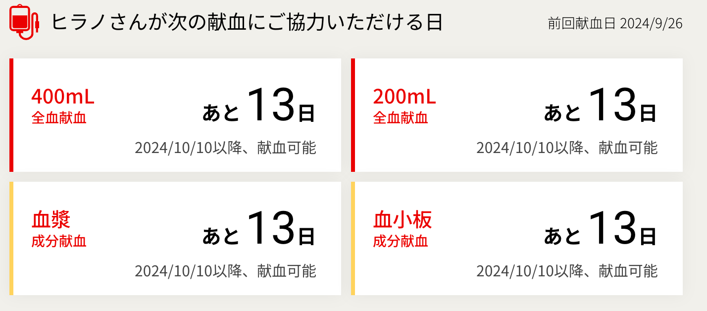 次の献血ができるまでの日数