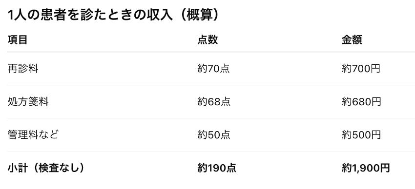 診療報酬・検査料・処方箋料をすべて含めた現実的な収入モデルを示しながら、